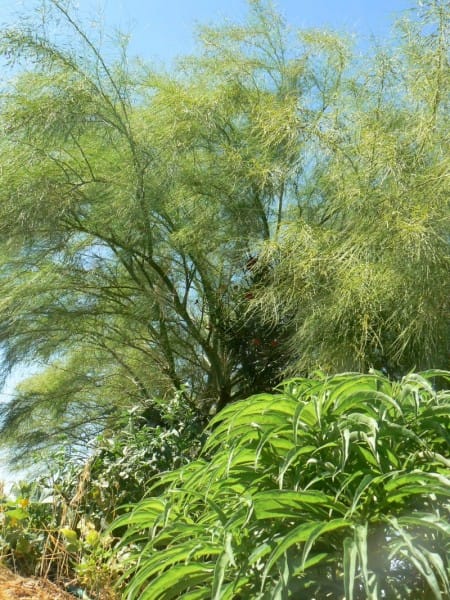 The many trees and perennials create a micro climate much more suitable to tomatoes and other veggies. Unfortunately we lost many trees in the cold winter of 2010/2011, but we’ve replanted and I’m especially happy that 4 of the 5 Palo Verde trees we planted last fall came back strong.