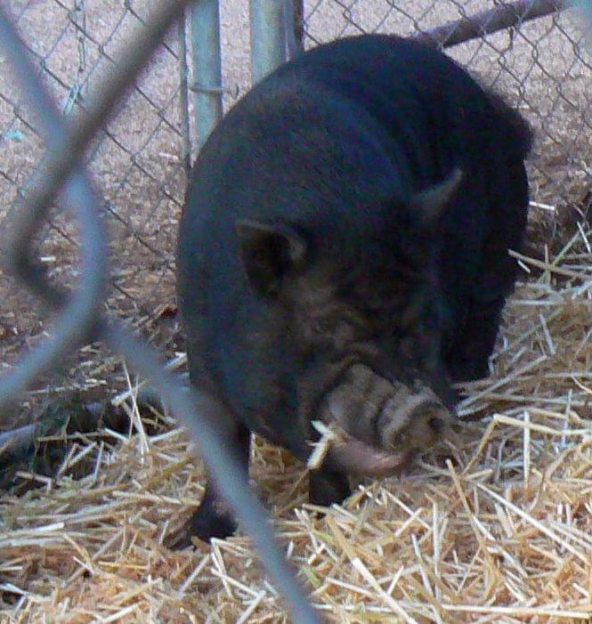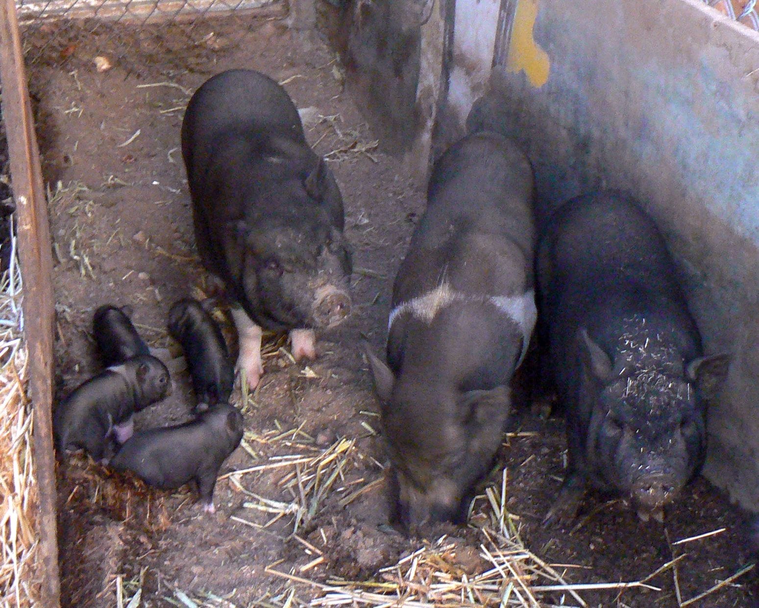 The piglets are available for adoption (as pets, NOT food) for a bag of feed. Harry, the proud father: