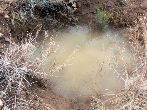 Around 10 AM I checked our roof runoff holding pond and it still had quite a bit of water in it: