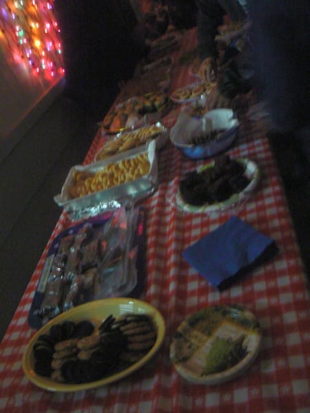 I made some fudge to bring and ate so much fudge at home I couldn’t eat a single cookie! There was also hot chocolate for the many kids and excellent cider: