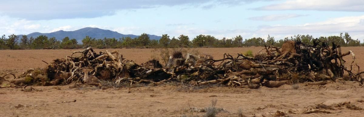 The bulldozed trees look to me like fallen soldiers -- trying to protect the next section to be cleared.
