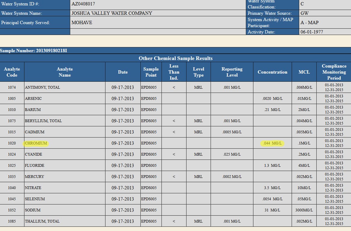 > https://highdesertdirt.com/blog/2018/06/17/chromium-6-in-drinking-water/