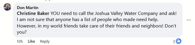 The old, sick, and poor who couldn’t make umpteen trips or maybe even just one trip to “downtown” Meadview and carry countless gallons of water, and don’t have helpful “friends and neighbors.”